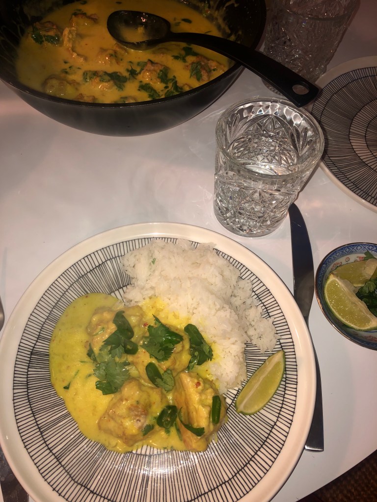 Jos haluat kastikkeestasi löysempää lisää kanalientä/kookosmaitoa, ja jos paksumpaa, voit lisätä slurrien (maizena-vesisekoitus).